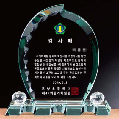 초등학교 동기회 퇴직 공로패 재직 위촉패 감사패인쇄 그린 크리스탈 제작 상패 기념패