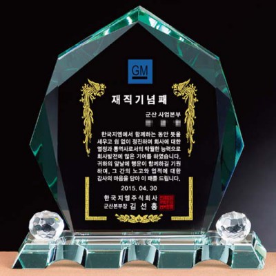 한국지엠주식회사 퇴직 위촉패 재직 공로패 감사패인쇄 상패 제작 그린 크리스탈 기념패
