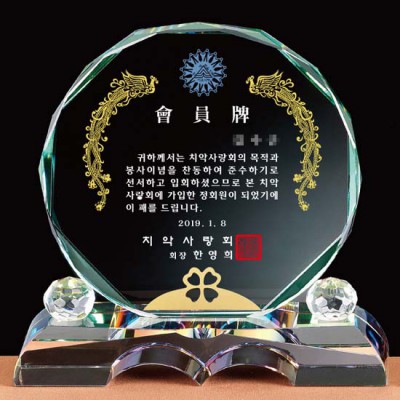 치악사랑회 감사패 재직 위촉패 퇴직 공로패기념패 제작 상패 인쇄 그린 크리스탈