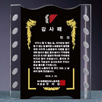농협중앙회노동조합 감사패 제작 투톤 크리스탈패