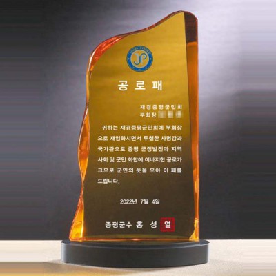 증평군수 공로패 제작 기념패 옐로우 크리스탈 금속다이패